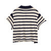 Loose striped design short sleeved lapel knit T-shirt for women